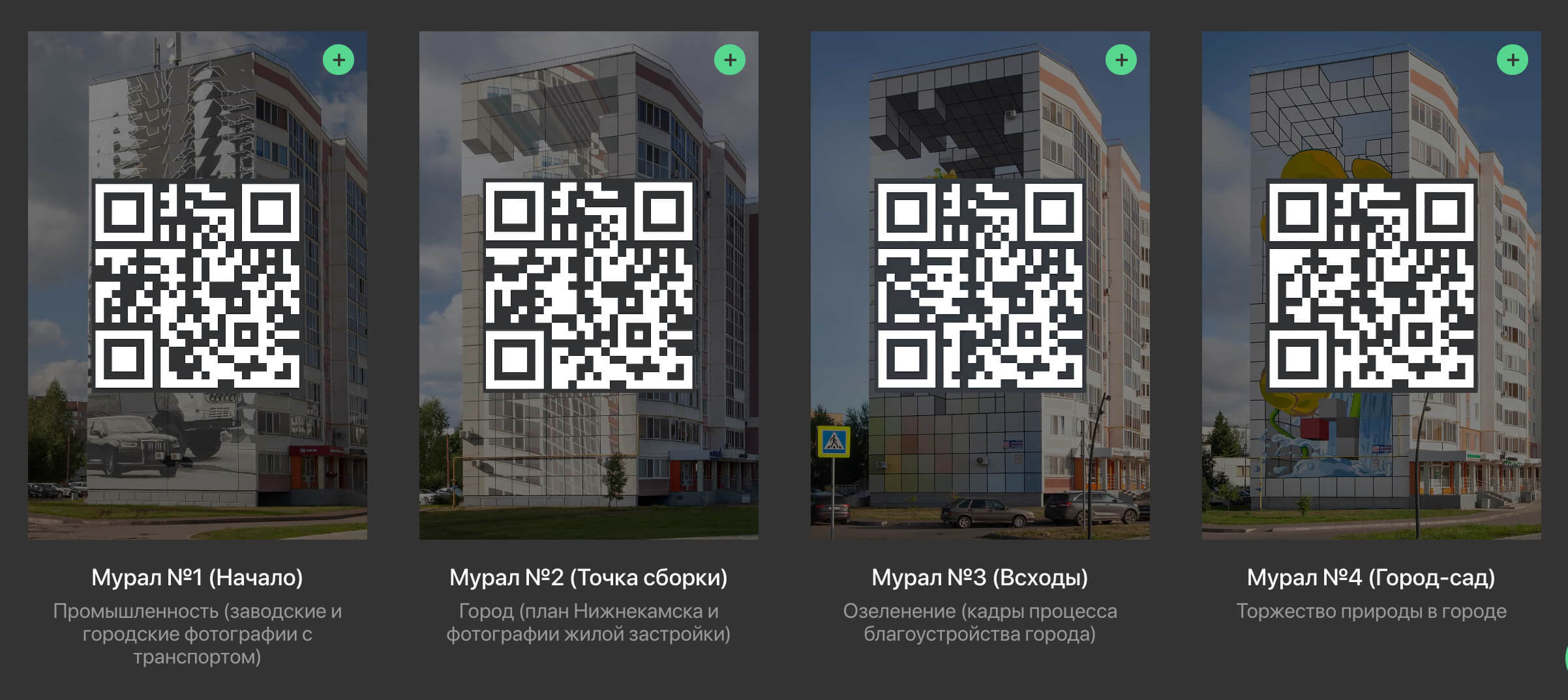 Дополненная реальность выводит произведение за рамки физического объекта. При сканировании QR-кодов открывается цифровой архив, для которого команда продюсерского центра документалистики Gorizont Films из Казани отобрала 350 снимков Нижнекамска 1960–1970-х годов, периода активной застройки.