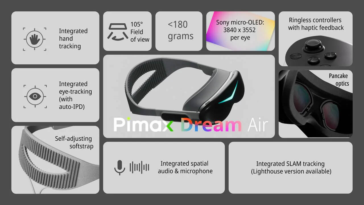 В анонсе Dream Air стоили $1900. Теперь цена версии с интегрированным трекингом и контроллерами составит $2100 (₽169 тыс.) без учёта налогов. Модификация с поддержкой трекинга SteamVR и без контроллеров будет стоить $1900 (₽153 тыс.). Релиз — в августе-сентябре 2025 года.