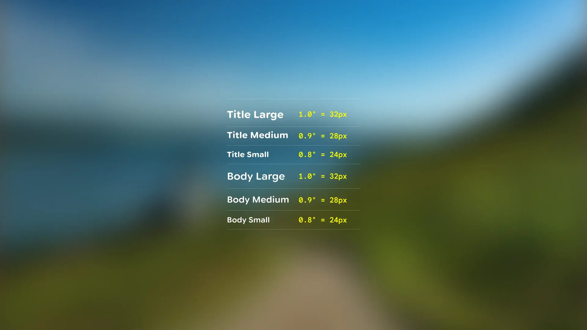 В вопросах читаемости дизайнеры должны основывать размер шрифта на том, что глаз может чётко видеть на расстоянии вытянутой руки. Дисплеи умных очков часто имеют более жёсткие ограничения из-за разрешения и искажений у краёв. Предсказуемые соотношения сторон мобильного дизайна больше не действуют.