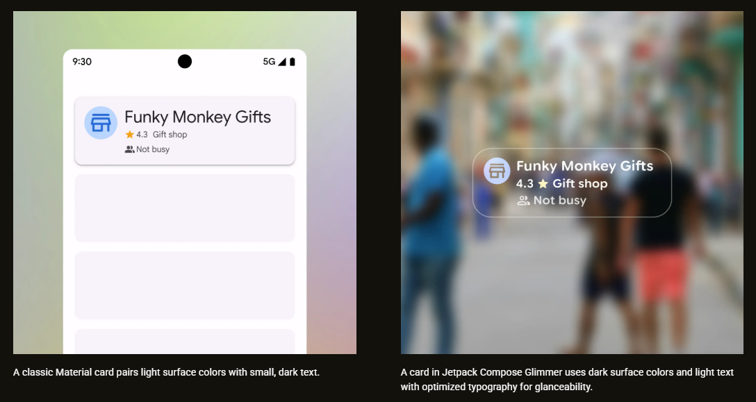 Google презентовала новый язык дизайна Glimmer для интерфейсов будущих умных очков с Gemini и прозрачными дисплеями и, чуть далее, очков дополненной реальности.