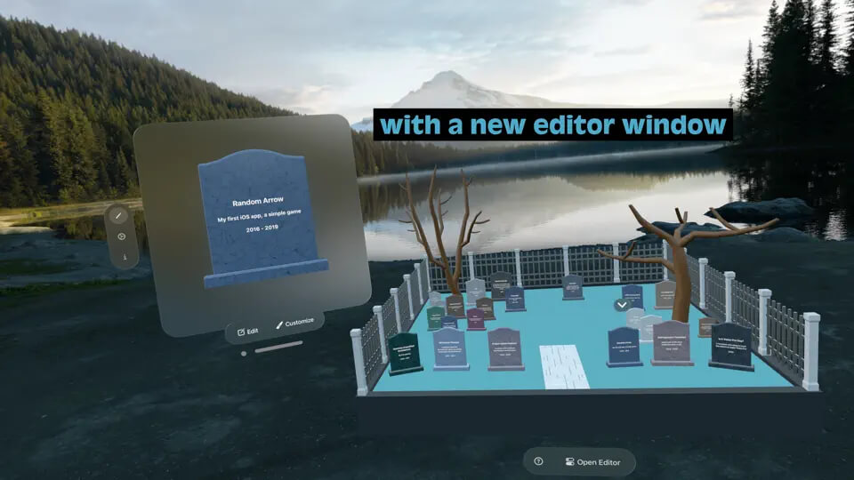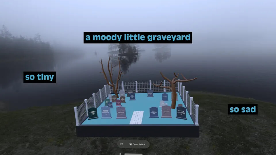 «Надежды и мечты должны куда-то уходить», — гласит слоган приложения. А на первом изображении в магазине приложений написано: «Такие маленькие. Так грустно». Не менее грустно, что Кладбище могут скачать только немногочисленные владельцы Vision Pro, поскольку автор выложил его лишь в App Store. Зато, в отличие от многих кладбищ, здесь место погребения бесплатное.