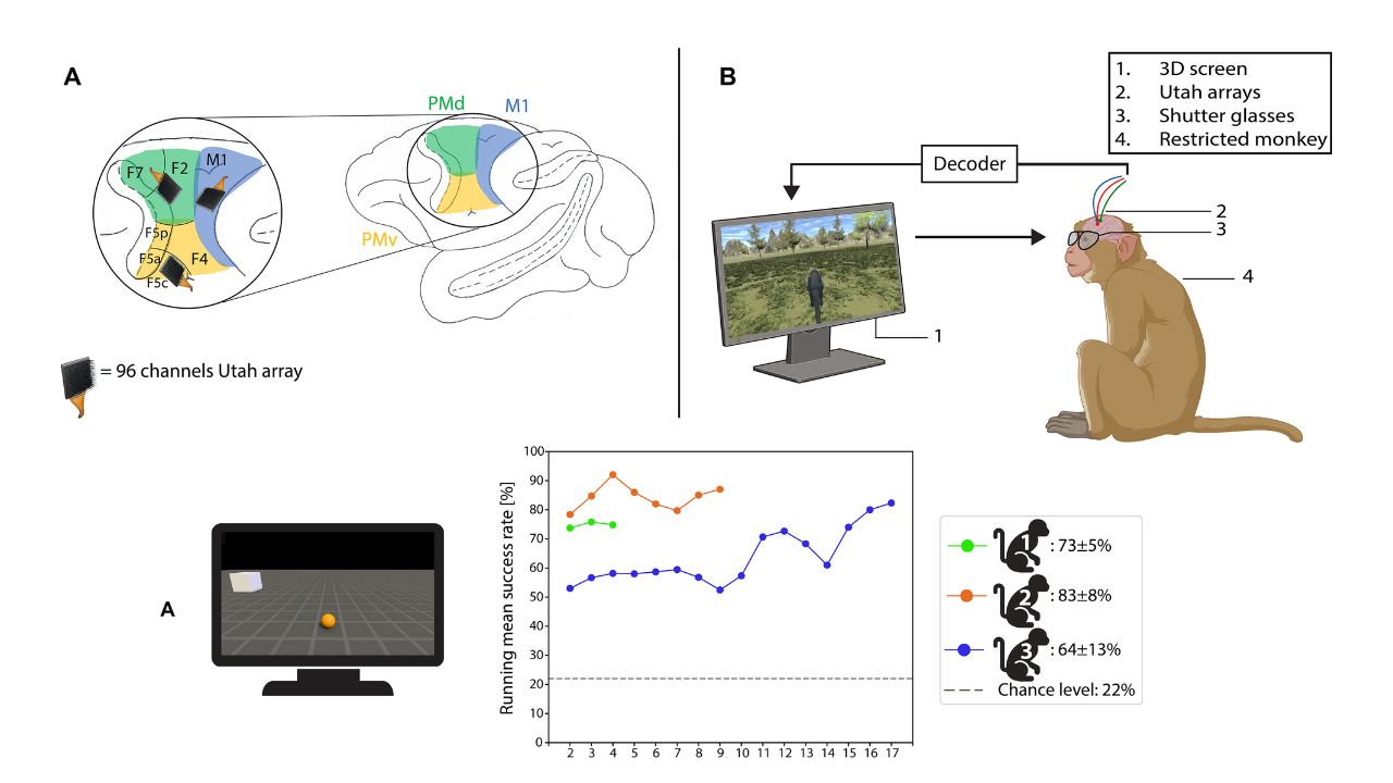 Группа бельгийских учёных разработала кортикальный интерфейс «мозг-компьютер» для помощи парализованным пациентам в управлении инвалидными колясками, протезами и другими устройствами. В экспериментальной части им удалось объединить нейронные сигналы из трёх двигательных областей мозга макаки с системой виртуальной реальности, достигнув управления скоростью в реальном времени без необходимости в видимых движениях или повторном обучении.