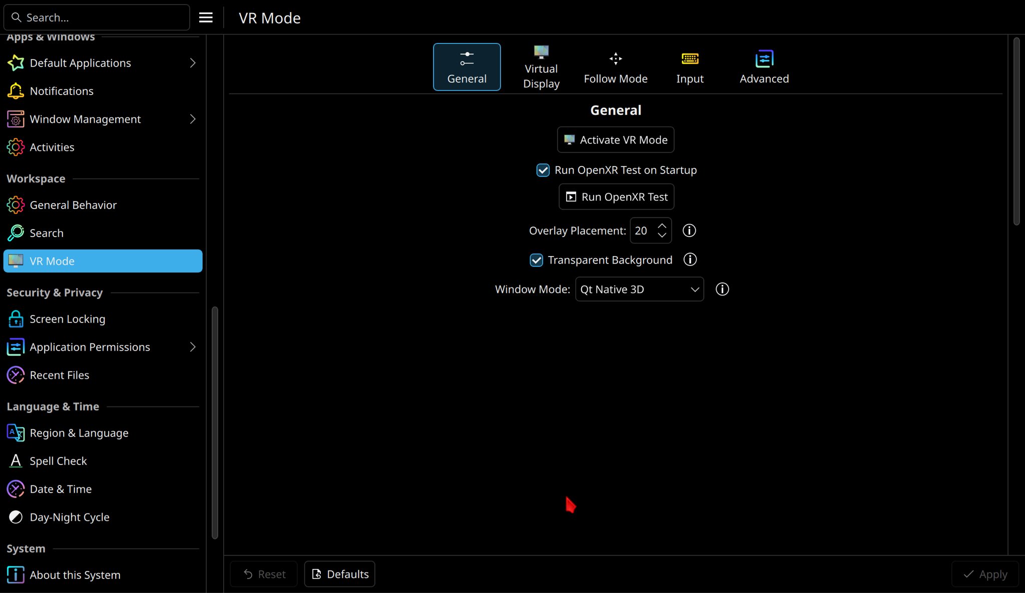 Плагин для диспетчера окон рабочего стола KWin превращает KDE Plasma в пространственную рабочую среду. Разработка Станислава Александрова позволяет формировать интерфейс на парящих в воздуху виртуальных экранах через очки дополненной, смешанной и виртуальной реальности.