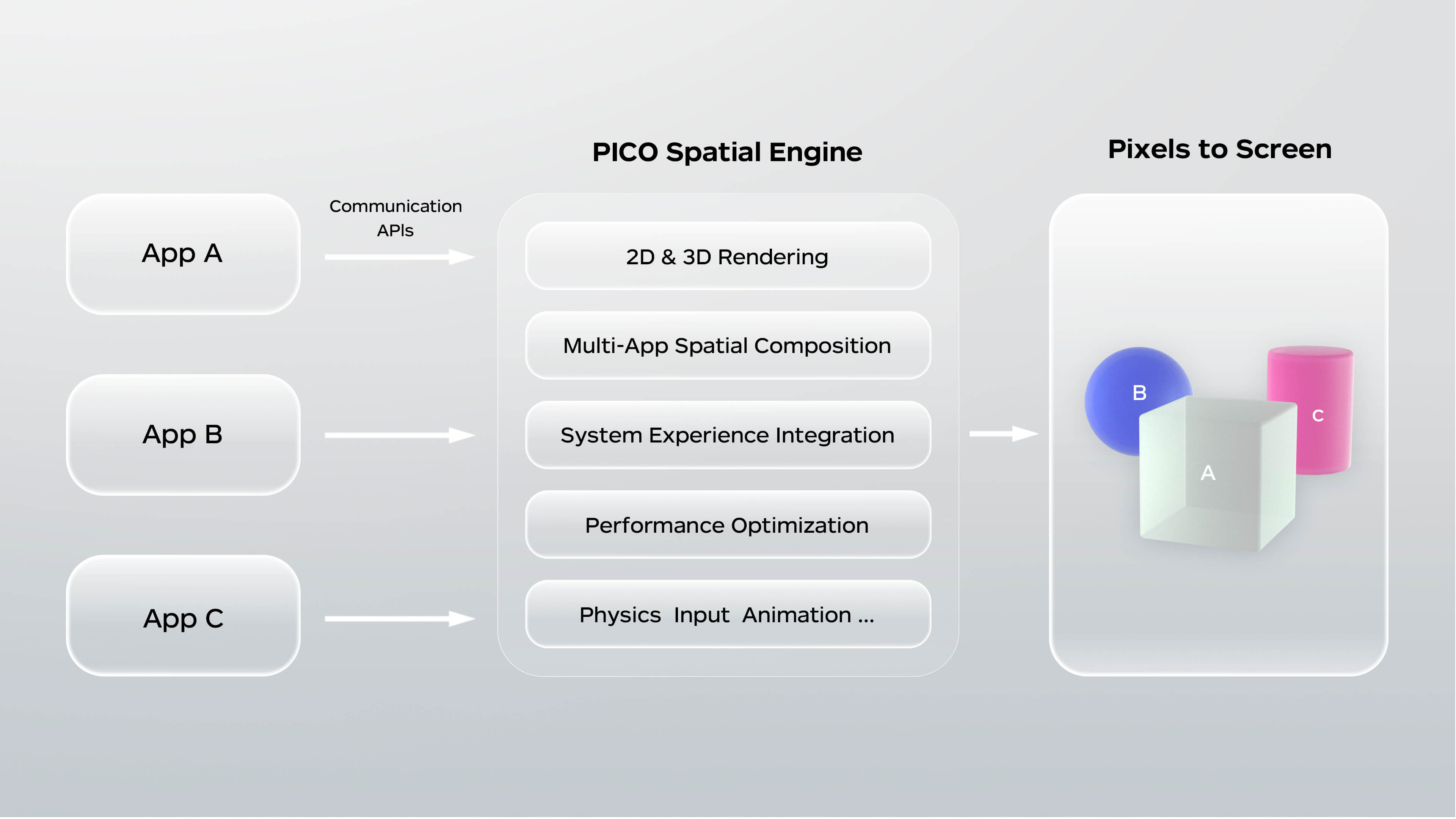 Pico OS 6, построенная вокруг Spatial Engine, обеспечит пространственную многозадачность с 360-градусным интерфейсом PanoScreen для размещения нескольких окон высокого разрешения в физическом пространстве. Система ввода будет поддерживать жесты рук, контроллеры, отслеживание взгляда и традиционные клавиатуры с мышками. Схема управления похожа на сочетание взгляда и рук в visionOS. Новый дизайн Cloud Crystal тоже напоминает разработки Apple.