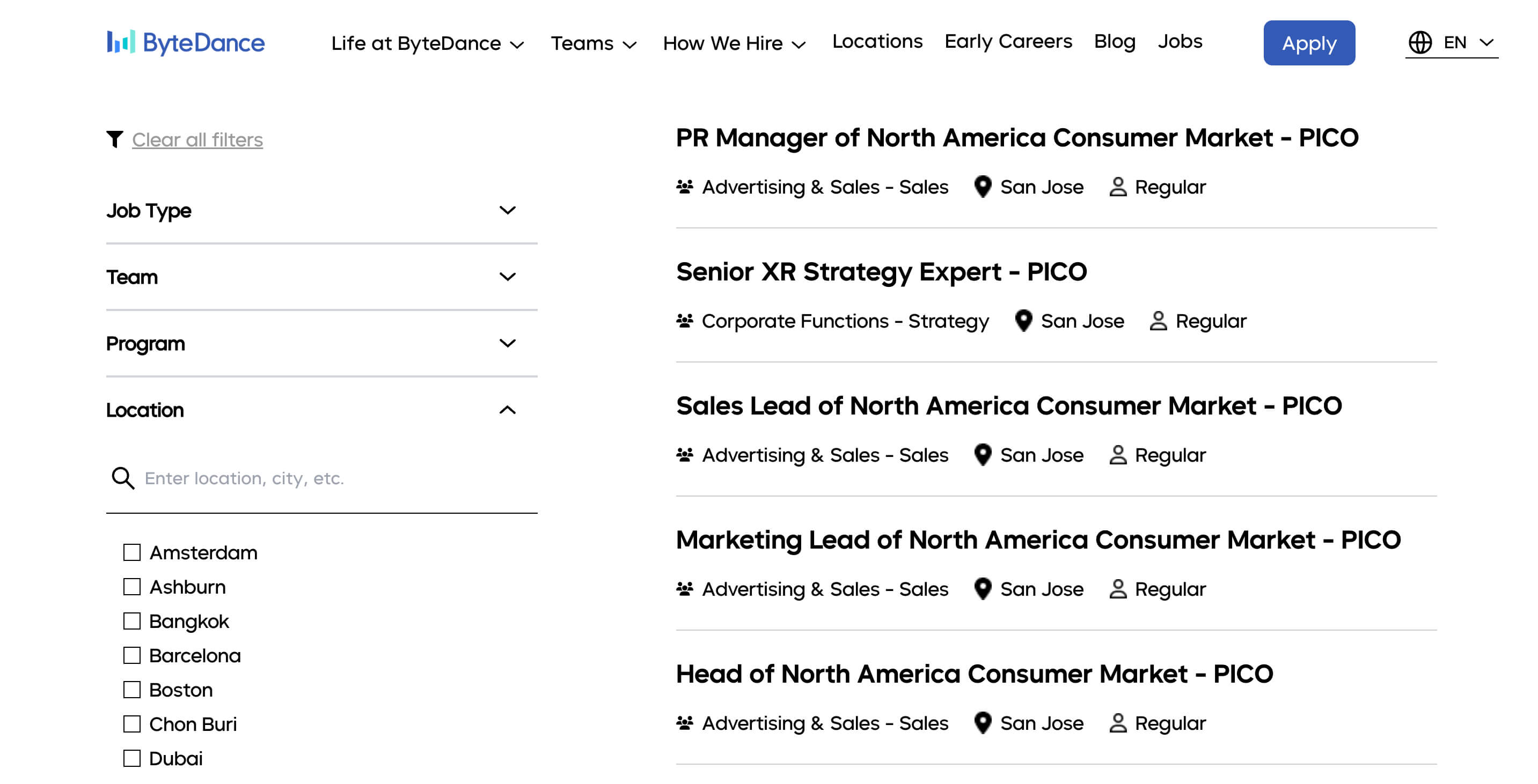 В списке вакансий ByteDance по потребительскому рынку в Северной Америке появились такие, как директор по продажам, директор по маркетингу, менеджеры по коммуникациям и по онлайн-каналам продаж.