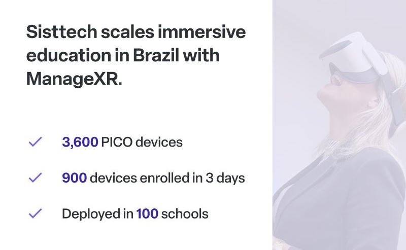 Бразильская компания из области образовательных технологий Sisttech Tecnologia Educacional вместе с разработчиком системы централизованного управления устройствами виртуальной и смешанной реальности ManageXR объявили о развёртывания 3600 очков Pico в сотне государственных школ Бразилии.