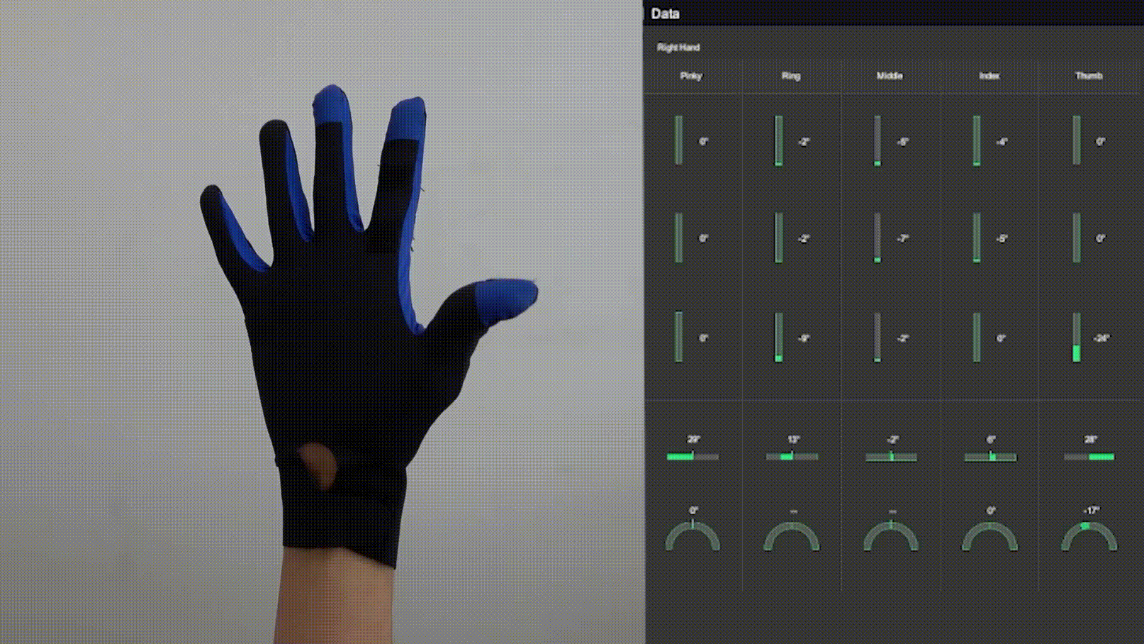 Каждая перчатка оснащена 12 датчиками, которые охватывают все 15 суставов пальцев, обеспечивая в общей сложности 21 суставный угол. SDK позволяет настраивать системы распознавания жестов. В одном опыте можно использовать до восьми перчаток одновременно. Батареи хватает на 15 часов.